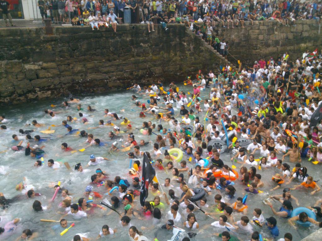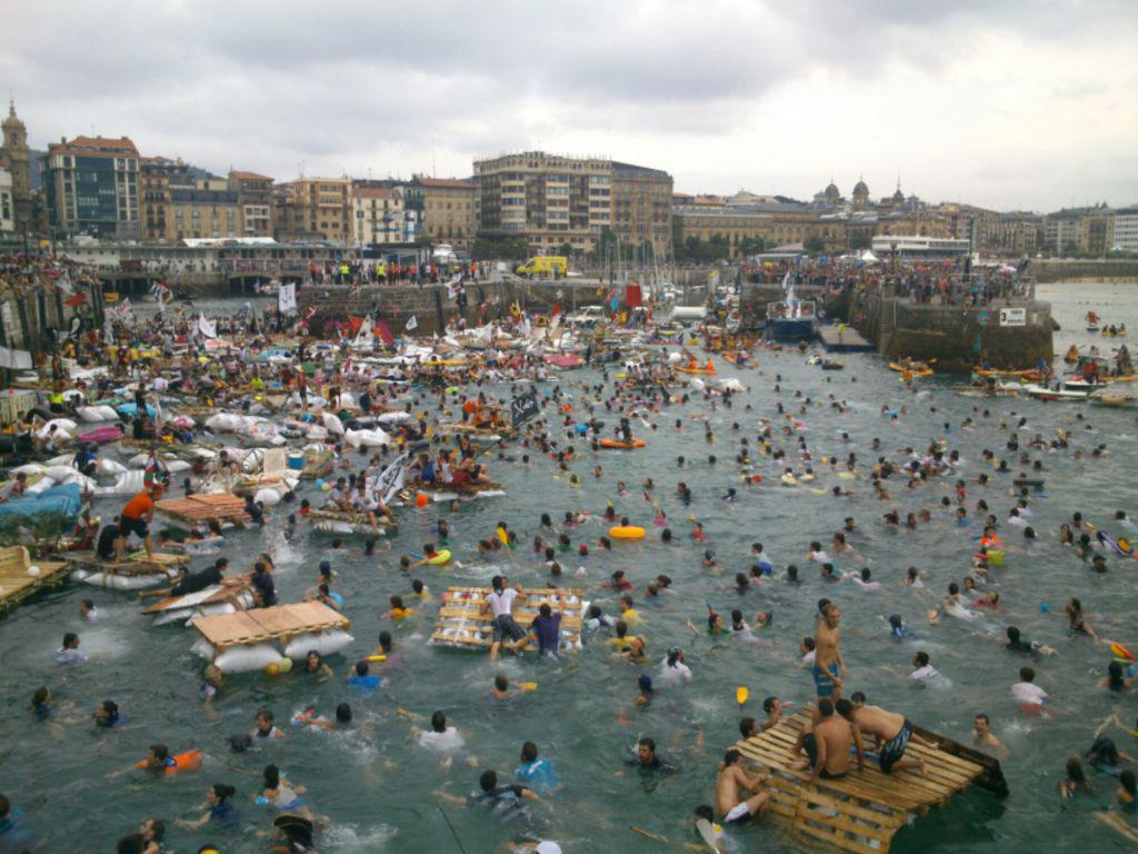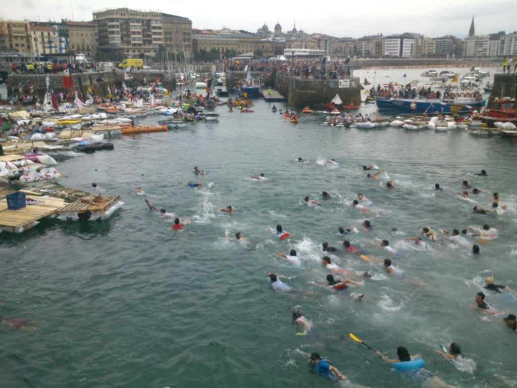 Aurten ere, hamaikagarren urtez jarraian, Donostia abordatu dute 3.000 pirata inguruk. 350 baltsetan banaturik, kaiko arranpatik uretaratu dira pirata guztiak, euripean. Ezkila kapitainak txupina bota ostean, Kontxarako bidea hartu dute piratek euren baltsekin. Stop kaleratzeak elkartearen izenean, “izan pirata, ez korsario” aldarrikatu dute; gaur egun korsarioak banketxeak direla salatuz. Musikak alaitu du giroa. Ikusleek ere ez dute hutsik egin aurtengoan.