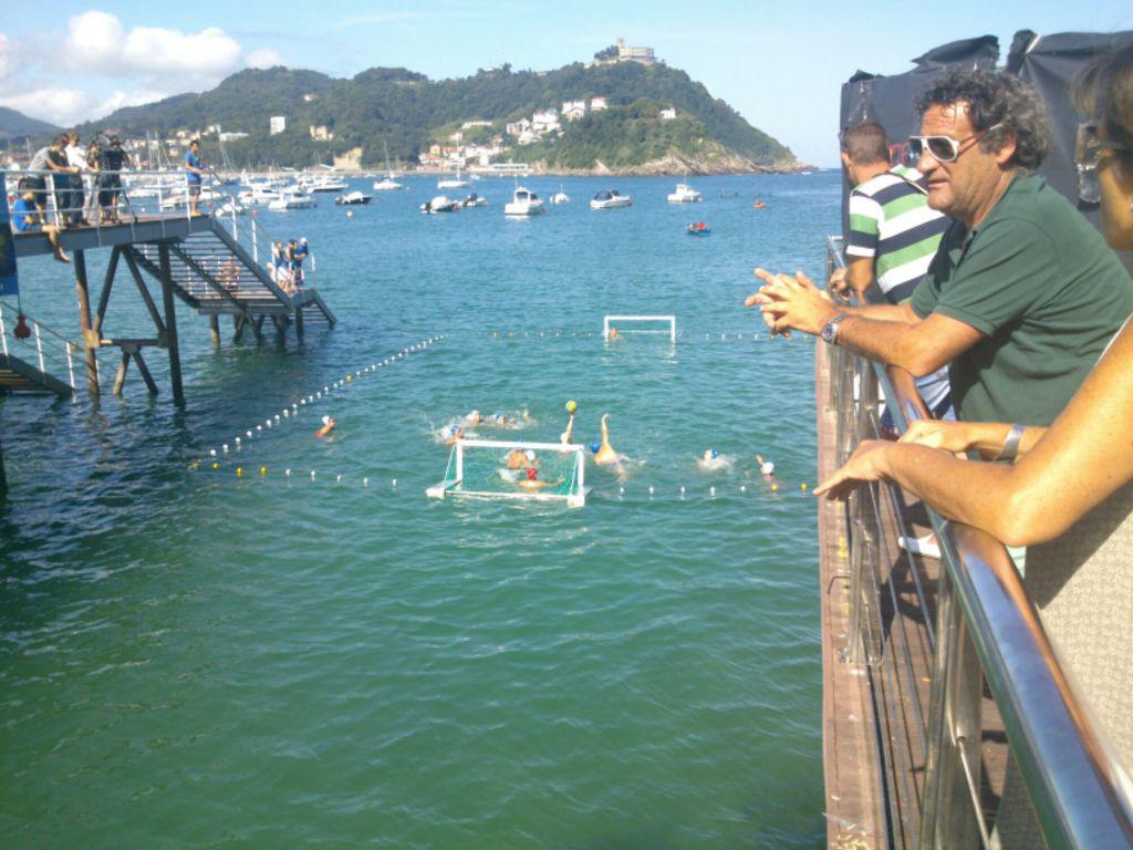 Waterpolo Donostiako kideek euren kirola zabaldu nahi dute, eta horretarako, goizero elkartzen dira Nautiko aurreko uretan hiruzpalau orduz, waterpoloan jokatu nahi duen edonor eurekin aritu dadin. Gaur ere ez dute huts egin, eta klubeko Juanjo Zabaletarekin hitz egin du IRUTXULOKO HITZAk, guztiaren berri jakiteko. “Waterpoloa zabaldu nahi dugu, eta ikusi dugu Aste Nagusia aukera berezia dela horretarako”, dio Zabaletak. Hirugarren urtez antolatu dute jarduera, eta oso arrakastatsua izaten dela diote. “Jendeak ezagutzea da gure helburua. Oinarrian gure taldeko jokalariak jartzen ditugu, eta gonbidatzen ditugu kanpotik datozen guztiak sartu, probatu eta jolastera, ondo pasatzeko. Hortik aurrera, urtean zehar waterpoloan jokatu nahi badute, jakin dezatela Altzako kiroldegian egoten garela”.