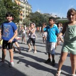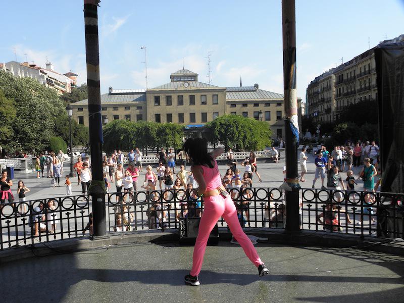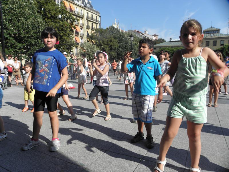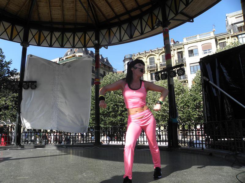 Aerobikan aritu dira arratsaldean Easo plazan. Haurrei zuzendutako saioan mugitzeko aukera izan dute gaztetxoek, irakasleak kioskotik aginduak ematen zizkien bitartean. Musikaren laguntzarekin, dantzatzeko parada izan dute. Gurasoren bat edo beste ere ausarta da aerobika eskolan parte hartzen, baina gehienek haurrek hartutako gunetik kanpo geratzea erabaki dute. Hori bai, argazki kamera eskuan, seme-alaben jarduna grabatu eta irudikatu dute.