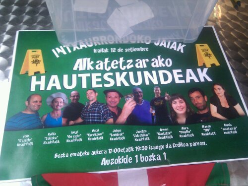 Auzotar guztiek euren botoa emateko eskubidea dute, 17:00etan hasi baitira hauteskundeak, eta 19:30ak arte bozkatzeko aukera egongo da. Erdikoa tabernaren parean jarri dute botoak jasotzeko kutxa, eta Mikel Galan eta Alazne Altuna ari dira guztia zaintzen.
