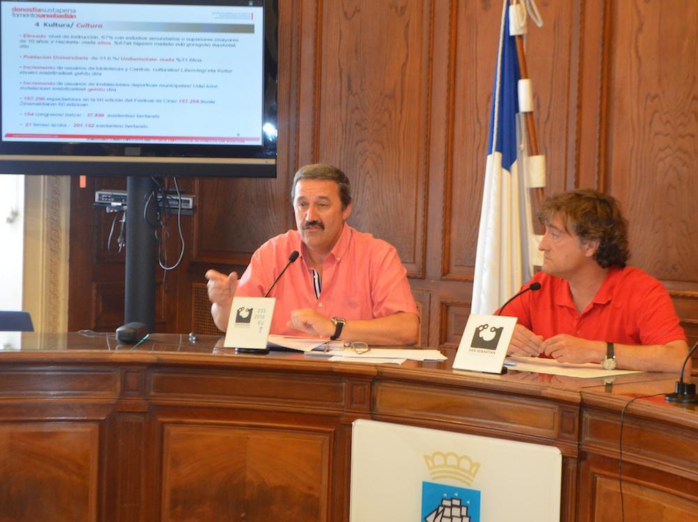 Euken Sese, garapen ekonomikoko zinegotzi ordezkariak eta Josu Ruiz, sustapeneko zuzendariak, 2012. urteko gizarte eta ekonomia datuak eman dituzte gaur.