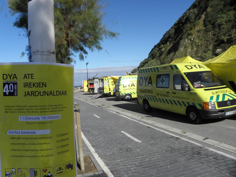 Gipuzkoako DYA Ate Irekiak jardunaldia egiten ari da Saguesen, bere 40. urtemuga ospatzeko ekitaldien barruan. 18:30ak arte bertan izango dira DYAko boluntarioak eta ibilgailuak, jendaurrean elkartearen lanaren berri ematen. Errepideko, mendiko eta uretako erreskateko unitateak atera ditu kalera DYAk, baita salbamenduko ontzia, motorrak, ospitale puzgarria eta argiztapen ekipamenduak ere. Horretaz gain, zenbait erakustaldi ari dira egiten. Eskalada murru bat jarri dute, bertaratutakoek igo dezaten; bihotz biriken suspertzea nola egiten den erakusten ari dira; eta auto baten bitartez, gidariak istripu batean zer nolako sentsasioa duen erakutsi dute, segurtasun-uhalaren garrantziaz jabetzeko helburuarekin.