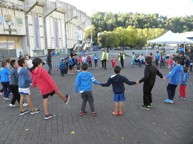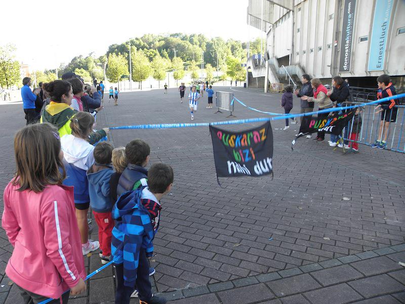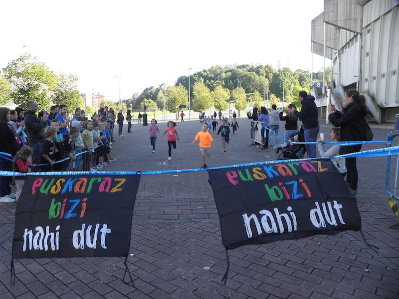 Euskaraz bizi nahi dut dinamikaren barruan, haurrentzako lasterketak antolatu dituzte goizean Amara Berriko jaien barruan. Anoeta estadioaren aurrean bildu dira, 10:00ak aldera, hainbat haur eta guraso. Izena eman eta gero, beroketa ariketekin hasi dira gaztetxoak, musikaren erritmoan. Ondoren, hiru multzotan banatu dituzte, adinaren arabera, bakoitzak bere neurrira prestatutako lasterketan parte har zezan. Hain zuzen ere, 0 eta 6 urte bitartekoek 100 metro egin dituzte; 7 eta 11 urte bitartekoek, 500 metro; eta 11 eta 14 urte bitartekoek, 1.000 metro.