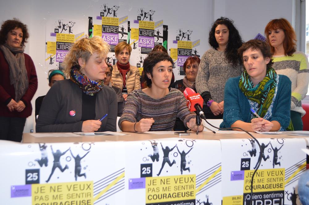 Azaroaren 25ean, indarkeria matxistaren kontrako egunean, ‘ausart sentitu beharrean libre sentitu nahi dutela’ aldarrikatuko dute talde feministek gaur, Emakumeen Etxean egin duten agerraldian.