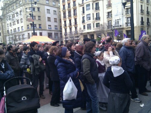 Trinitate plazako irudia, Gaztelumenditarrak bertsotan ari ziren bitartean. (Argazkia: Estitxu Zabala)