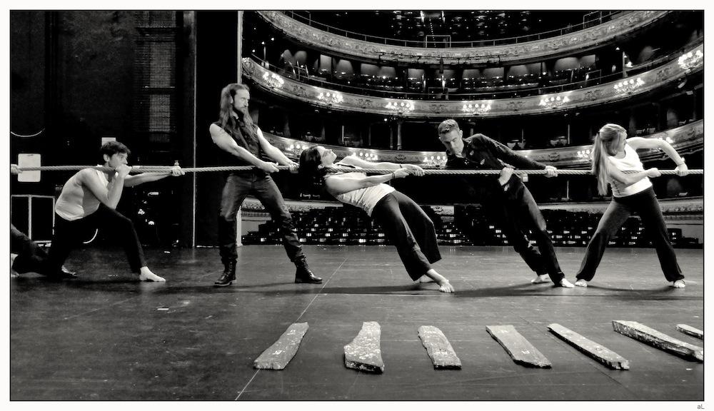 “Erronka nagusia herri kirolen diziplina gehitzea izan da. Plastikoki eta sonoroki oso erakargarria iruditzen zitzaigun eta antzokiak ezaugarri horiek indartu ditu”, azaldu du Harkaitz Martinez de San Vicentek. Plazatik antzokira eraman nahi honek lanbideen mugimenduak koreografia bihurtu ditu eta baserriko lanabesen sonoritatea landu. Azken batean, publikoaren aurrean ez ohikoa den planteamendua egingo dute, desafio bat izango balitz bezala.