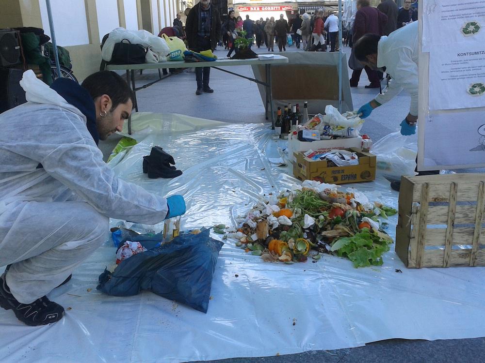 Hondakinak sailkatzea zein erraza izan daitekeen frogatzeko eta edukiontzi batean nolako hondakinak nahasten diren erakusteko edukiontzi bat irauli dute. Ondoren, birziklagarria dena eta errefusa dena bereiztu eta bakoitza zegokion edukiontzira bota dute.