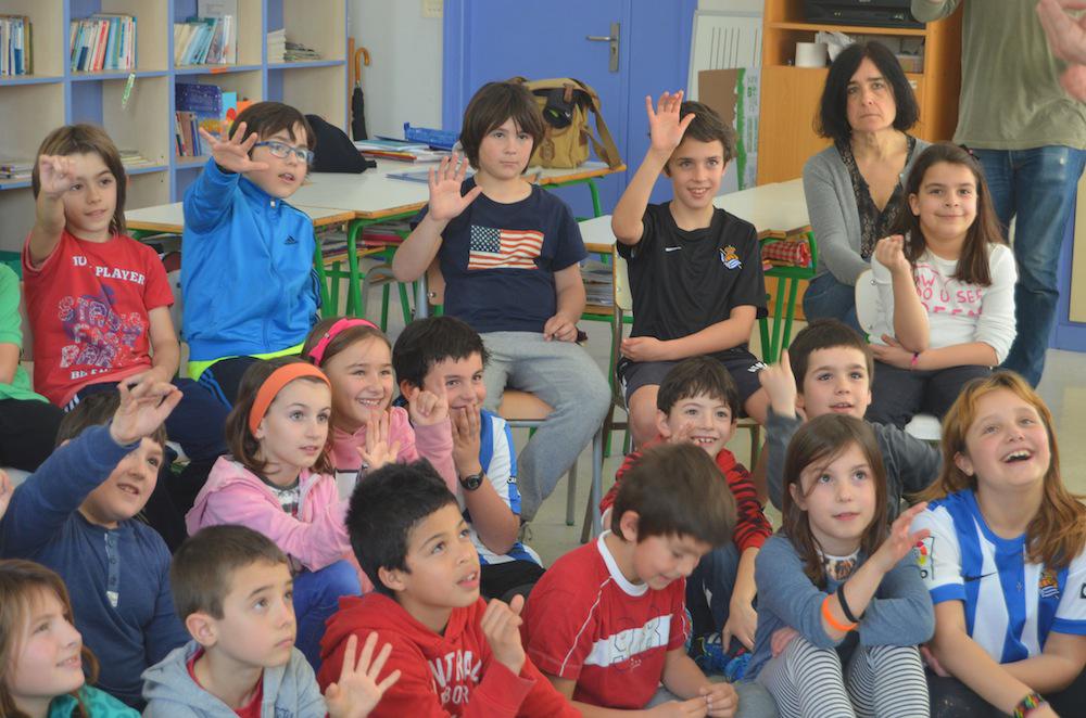 “Eskuan bost hatz ditugu. Osorik ederra. Denak dira desberdinak, baina bakoitza beharrezkoa”. Halaxe kontatu die Pello Añorgak Orixeko lehen hezkuntzako hirugarren mailako ikasleei. “Gela honetan batzuk hemengoak izango zarete, eta beste batzuk hangoak”, jarraitu du ipuin kontalariak. Ikaskide bat Nikaraguakoa dela esan dute batzuek, beste batek bere osaba Katalunian bizi dela…