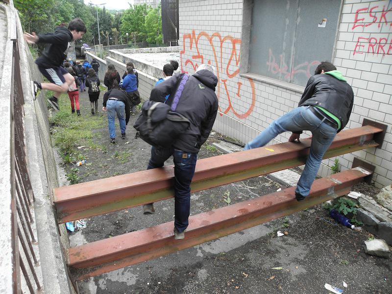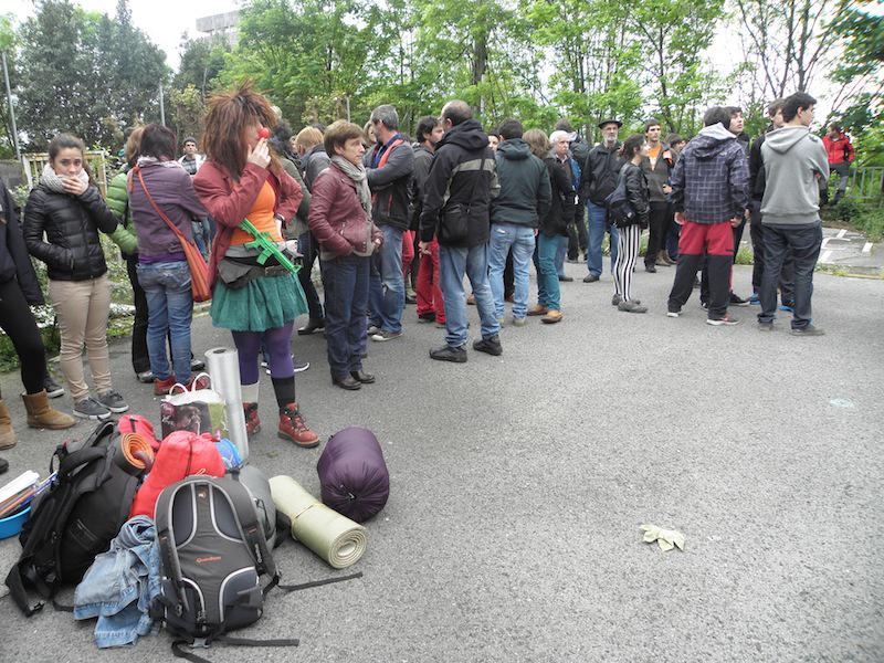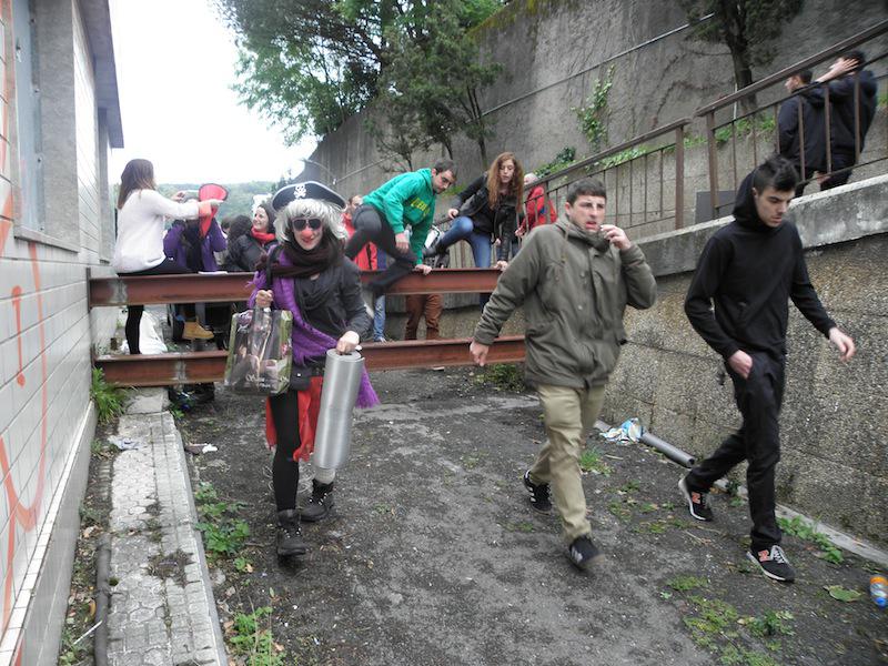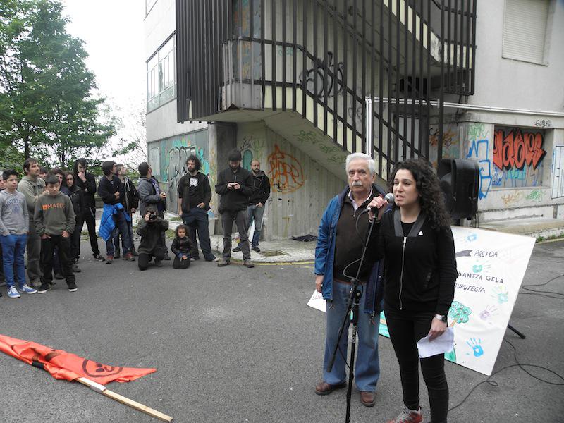 Adierazpenak eginda, mozorrotutako zenbait gazte eraikinaren leihoetara irten dira bengalekin eta okupazioaren ikurrarekin. Eguerditik izan dira barruan, baina arratsaldera arte itxaron dute okupazioari forma emateko, Onkologikoaren kanpoaldean bildutako lagunen babesa izan arte. “Orain Auzoetxea eraikitzen hasiko gara. Barruan direnak atea irekitzen saiatuko dira, baina, bitartean, jarduerak egingo ditugu kanpoaldean”, iragarri du kanpoan zegoen gazteetako batek.