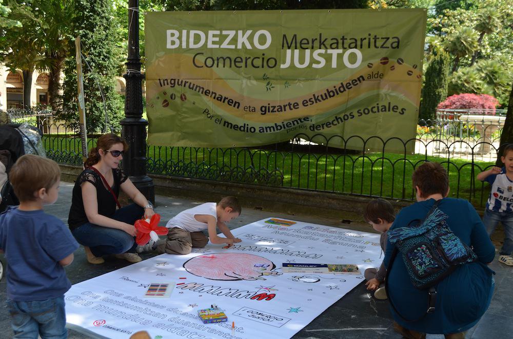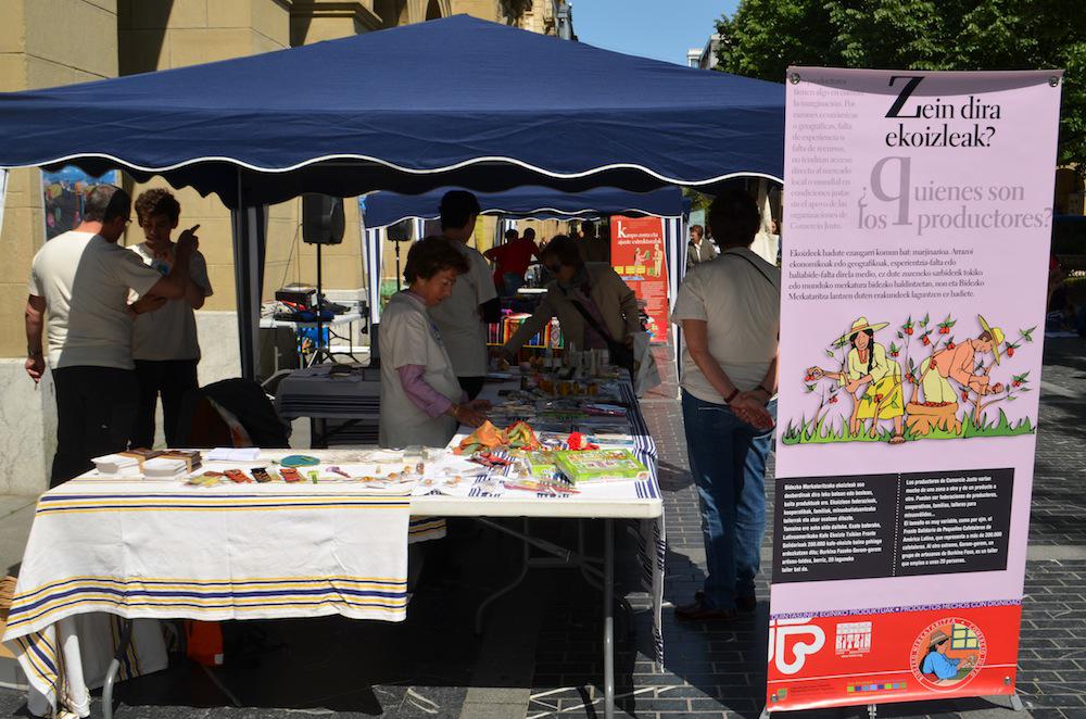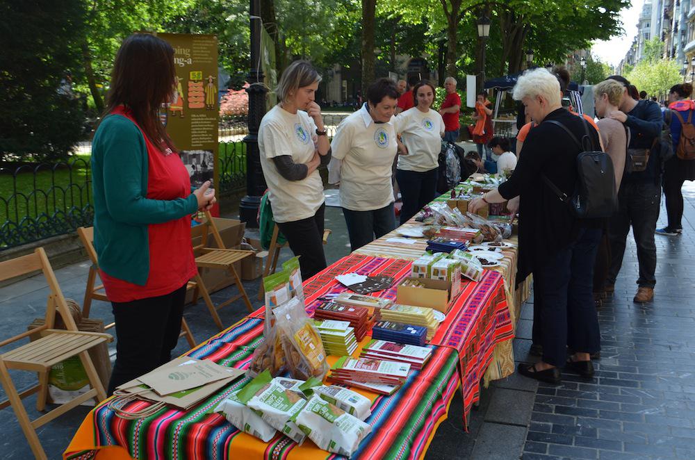 Bidezko Merkataritzaren eguna da gaur, eta Donostiako taldeek azoka jarri dute Gipuzkoa plazan. Hainbat produktu dastatu eta erosteko aukera eskaintzeaz gain, musika tailerrak eta informazio guneak ere jarri dituzte.