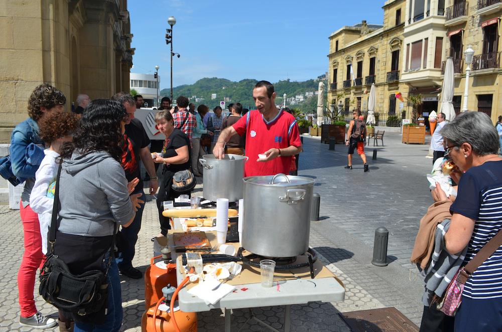 Ostegunean erregistratu zuten proposamena udaletxean, eta gaur kalean erakutsi nahi izan dute. Horretarako, “bidebietarren erara”, festa giroan agerraldi bat egin dute udaletxearen atarian. Gerturatzen zirenei informazioa eskaintzeaz gain, txistorra pintxoak eta salda ere eskaini dizkiete.