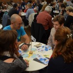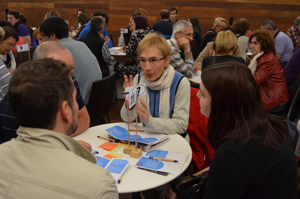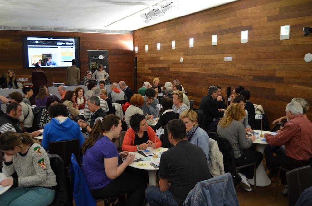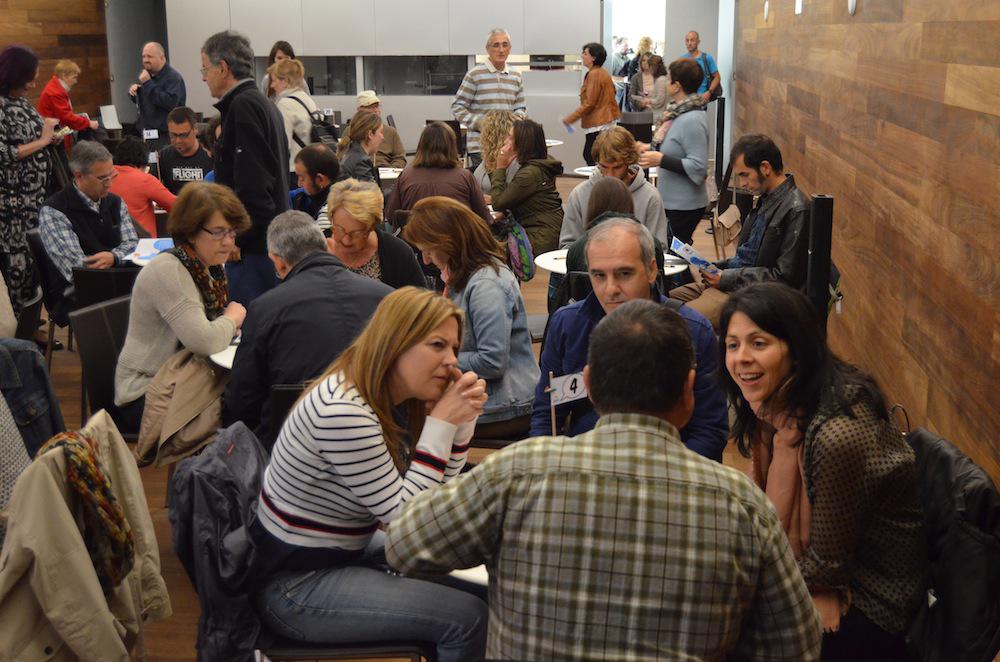 San Telmo Museoko Areto Nagusiko sarreran zenbakidun txartel bat hartu eta zenbaki horren arabera eseri dira ikasleak. Mahai bakoitzean lau pertsona elkartu dira, euskara ikasleak zein euskaraz hitz egiten dakiten arren, mintzatzeko ohiturarik ez dutenak.