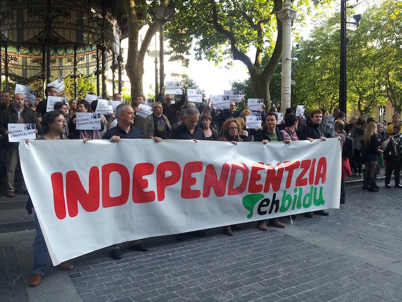 EH Bilduk elkarretaratzeak egitera deitu du Hego Euskal Herriko lau hiriburuetan, Espainiako errege Juan Carlos Borboikoak abdikatu duen egunean. Bulebarrean egin dute, Donostiari dagokionez, eta hainbat herritar bildu dira Independentzia lelodun pankartaren atzean, eta Euskal Errepublikaren aldeko eskuorriak eskuetan.