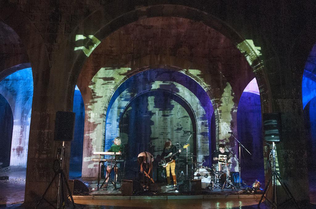 Mungiako musika taldeak zuzenean jo du ur biltegi zaharretan.