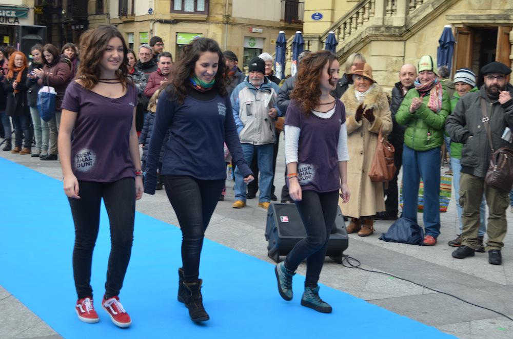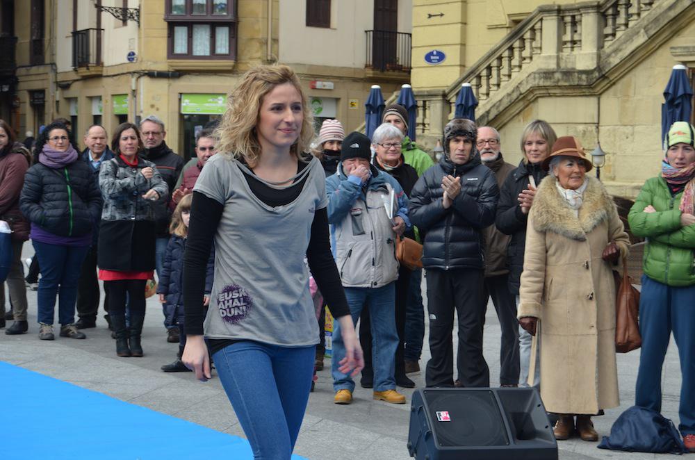 AEK euskaltegiaren 19. Korrika Donostiara iristeko hilabete baino gehiago gelditzen den arren, gaur goizean Korrikarako egindako arropa erakusteko desfilea egin dute, Bretxa merkataritza gunearen inguruan. Musikak lagunduta, haur zein helduek ibili dira modelo lanetan, alfonbra urdinetik euren arropa erakusten. Kamisetak, jertseak, txalekoak… denetarik ikusi ahal izan da desfilean. Erakutsi duten arropa eta material guztia Bretxa merkataritza gunearen lur azpiko solairuan duten dendan erosi daiteke. Gainera, bertara hurbildu direnek Korrikaren kanta, Denok Korrikara!, zuzenean entzuteko aukera izan dute. Gabriel Aresti poetak idatzi eta Oskorrik musikatutako Sautrela abestian du oinarri Korrikaren abestiak. Hitzak moldatu dituzte. Musika talde batek ez, propio Korrikaren kantua egiteko sortutako talde batek egin du abestia. AEK-ko eta Korrikako bertako kideak dira horietako batzuk.