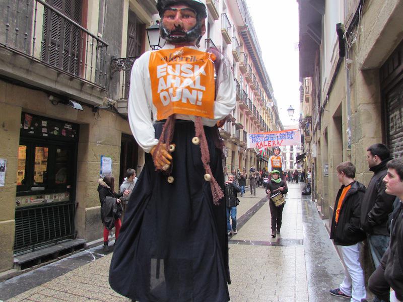 Korrika badator hirira, eta euskararen aldeko tropelaren etorrera iragartzeko hainbat jarduera egin dituzte gaur Donostian. Parte Zaharrean giro bikaina piztu da. Joaldunek, lehenengo, eta erraldoiek eta buruhandiek, ondoren, hartu dituzte kaleak. Bitartean, Kantu Jirak hilabete bakoitzeko hirugarren larunbataren ohiturari ekin dio, gaur modu berezian. Izan ere, Korrikari abestu egin diote, ohiko kantak abesteaz gain. Konstituzio plazako liburutegiaren arkupeetan, berriz, bazkaria prestatu dute, igandeko korrikaldirako indarrak hartzeko.