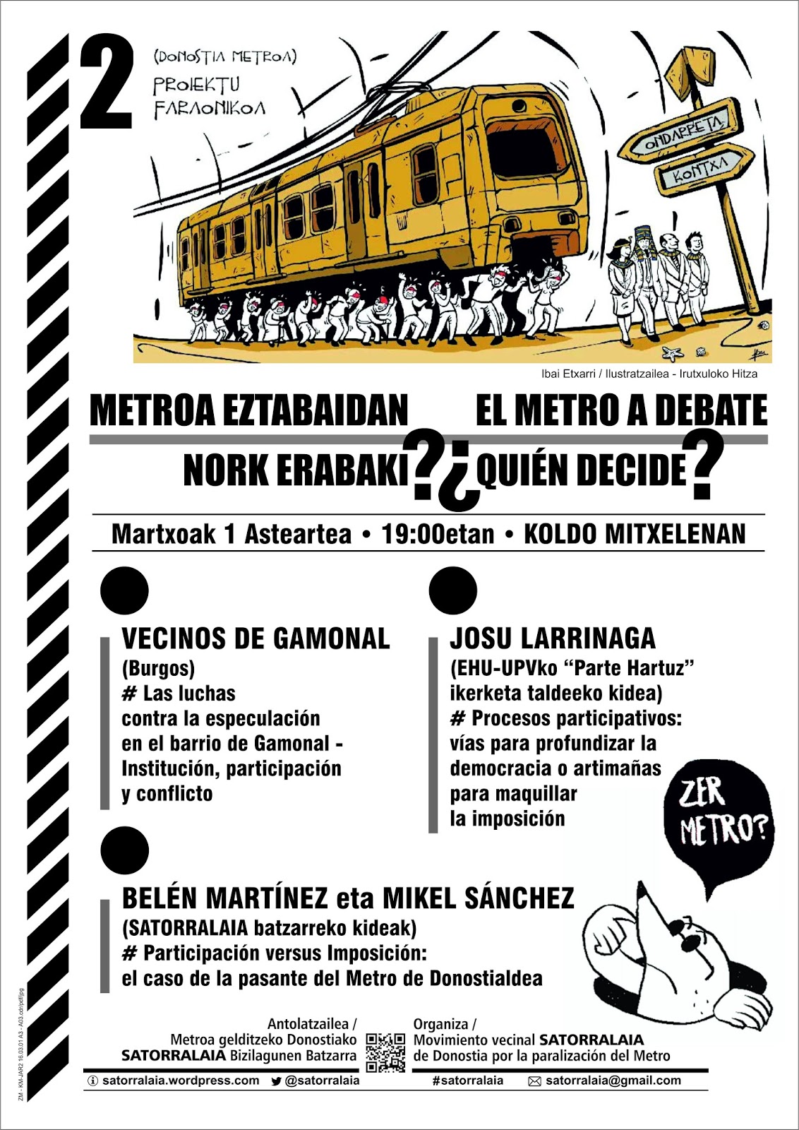 -“Satorralaia” bizilagunen mugimenduko kideak: “Partehartzea versus inposaketa Metroaren auzian”.