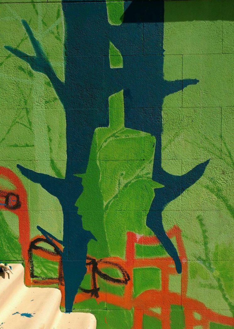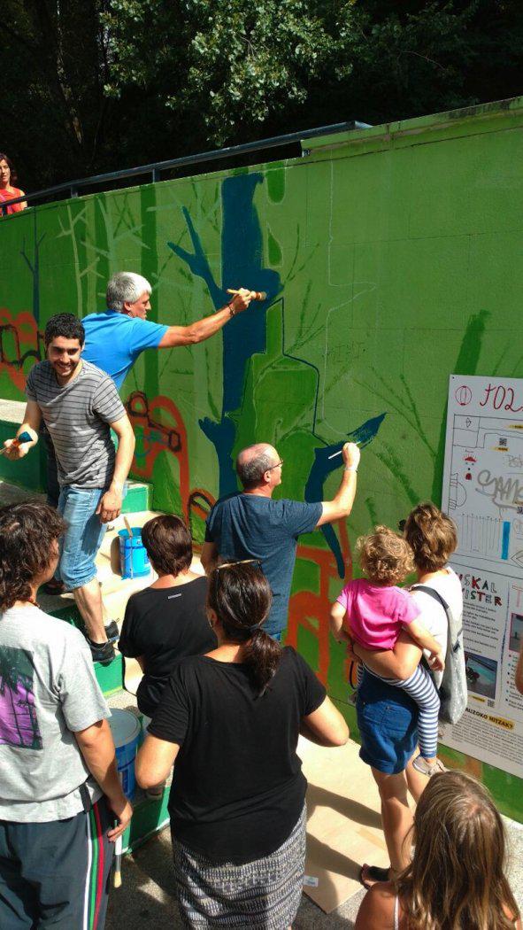 - Bere soslaia marraztu zuten Plaza Haundiko horma batean.