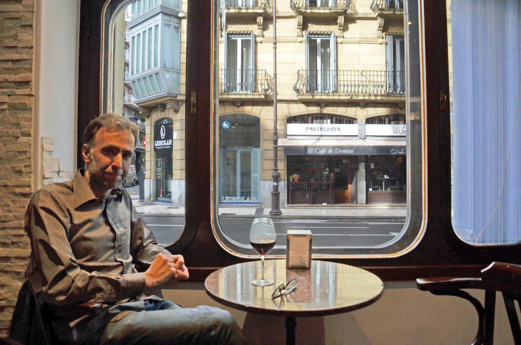 Imanoli buruz idaztearen alderdi ona da Donostian oso ezaguna zela. Hainbat jenderekin hitz egin dut, eta batek baino gehiagok aipatu dit kalean asko ibiltzen zela, eta taberna giroan ere bai. Hemen inguruan, zentroan, asko ibiltzen zen, hemen, besteak beste. Nire susmoa da lekuak aukeratzen zituela izenaren arabera. Eta nire teoria da Paristik etorri zenetik Parisen arrastoak bilatzen zituela Donostian. Donostiak beti izan du pretentsio paristar hori. Taberna asko daude hirien edo lekuen izena daukatenak. Sentsazioa da bidaiatu ezin duzunean, mikro bidaia bat egiteko modua dela izen berezia duen tabernara joatea. Ni ez naiz bereziki asko etortzen hona, baina bada leku klasiko bat. Kristaleratxo berezia dauka, kalea ikusten da, eta hori gustatzen zait. Hori ere oso paristarra da, denak jartzen baitira kalera begira, jendea paseoan ikusteko. Hori da beraien afizio nagusietako bat.