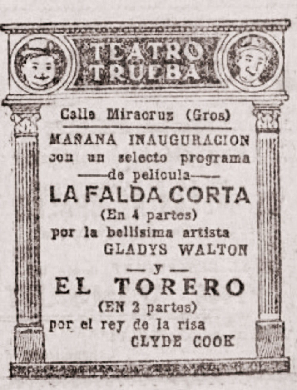 Mirakruz kalea 1960ko hamarkadan egindako argazkian. (Argazkia: Kutxateka) 1923ko urriaren 1ean zabaldu zituen ateak Trueba zinema aretoak (Trueba antzokia orduan). Miramar eta Arte Ederrak antzokiak kudeatzen zituen Mendizabal e Hijos enpresak jarri zuen martxan, Urumea ekialdean zabaltzen ari zen auzoak aisialdi eskaintza eskasia zuela jabetuta. XX. mende hasierara arte izaera industriala izan zuen auzoa, Petit Paris tankerako proiektu arkitektonikoaren barruan sartu nahi izan baitzuen Donostiako Udalak. Javier Maria Sada (Donostia, 1943) historialariak Cinematógrafos donostiarras liburuan azaltzen duen moduan, «Groseko auzo jendetsuak gogotsu hartu zuen Kursaal eta Kolon azpiegiturei batuko zitzaien areto handia».