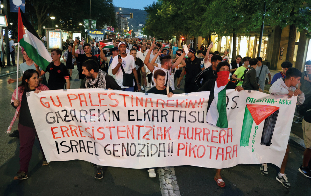 Bi urte. Hilaren 7an, bi urte beteko dira Israelgo Estatuak Palestinako herriaren aurkako genozidioa gogortu zuenetik: 66.000 lagun inguru hil ditu ordutik Israelgo Estatuak, tartean, 20.000 haur inguru. Horiek dira zifra ofizialak, baina askoz zifra altuagoak ematen dituzten erakundeak ere badaude. Beste leku askotan bezala, Palestinaren aldeko elkartasun uholdea bizi izan du Donostiak bi urteotan, mobilizazio batzuekin Euskal Herrian zein nazioartean erreferentzialtasuna lortuz. Herri eragile asko eta udala, Zinemaldia, Tabakalera eta halako erakunde ofizialak ere Palestinaren alde posizionatu dira dagoeneko. Elkartasuna presente zegoen duela bi urte baino lehenago, eta aurrera begira ere egongo da.