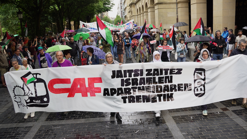 Otxoak argi dauka: «Hitzetatik ekintzetara pasatuko diren urratsak behar dira, ekintza zehatzak. Etxera begira, hor daukagu CAF enpresa sinbolo gisa, baina beste asko ere badaude, harremanak dituztenak Israelekin. Eta erakunde publikoek ere ekintza zehatzak egin behar dituzte. Hitzak sobran zeuden aspalditik, baina bi urte pasatuta, are gehiago». Ildo beretik jo du Askapenako militanteak: «Israelekin harremanak eten behar dira eta ez daitezela harreman berriak egin. Kaleko konfrontazioaren bitartez, era berean, lortzen ari gara hainbat erakundek eta enpresek harremanak etetea eta pausoak ematea».