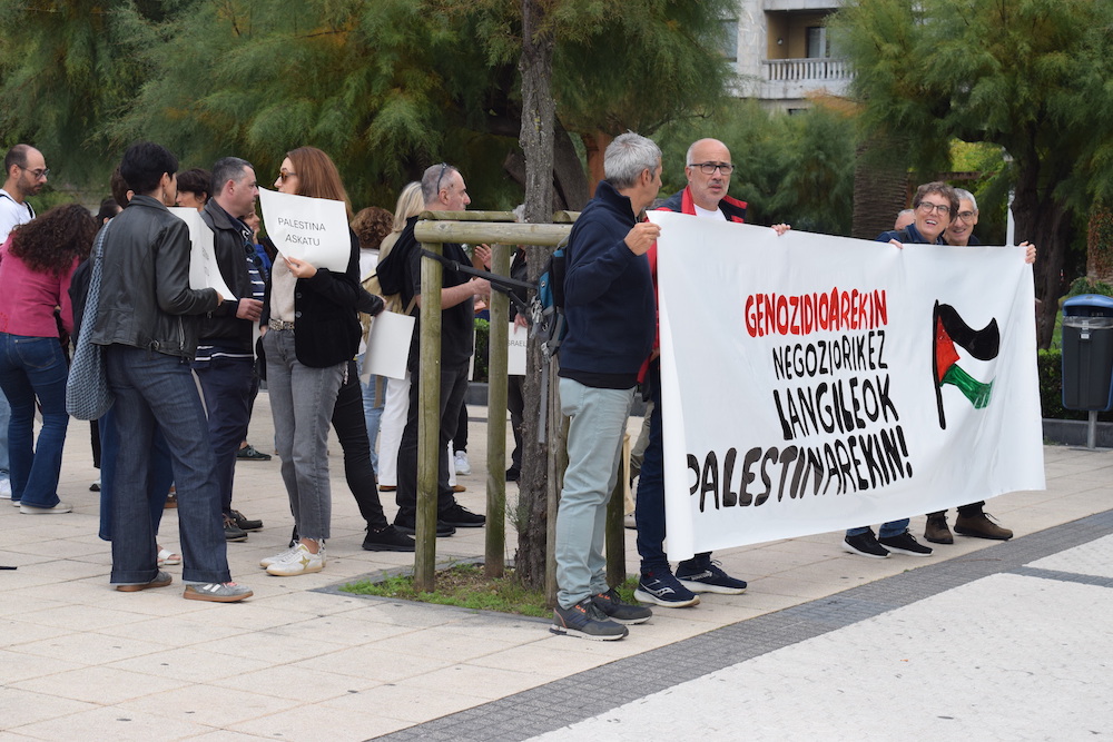 Elkarretaratzean, Israelekin harremanak eteteko eskatu diete Imanol Pradalesi eta Maria Chiviteri.