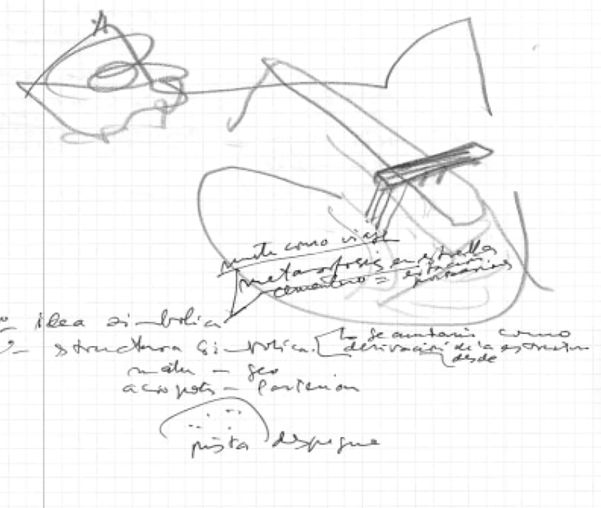 «Ametzagainan pentsatzen nuen hura zela tokirik zirraragarriena eta egokiena, egiazkoa, Montevideoren planteamenduarekin ia zeruko erlijio monumentaltasun entsegu bat egiteko». Ia-ia airean suspenditutako eraikina litzateke, eta, aurrean, hildakoak zerura eramango lituzkeen «aireportua»: «Kanposantu berrirako proposatutako lursaila gure lehen kultura eta erlijio nortasunari buruzko funtsezko ideia horietara egokitzea hain da zehatza, harrigarria. Muinoaren gailurra itsaso gaineko aire zabaleko pista bat bezala geratuko zen, aireportu moduko bi seinaleen artean, ezkerretara Urgulleko tontorra, eskuinetara Uliakoa».