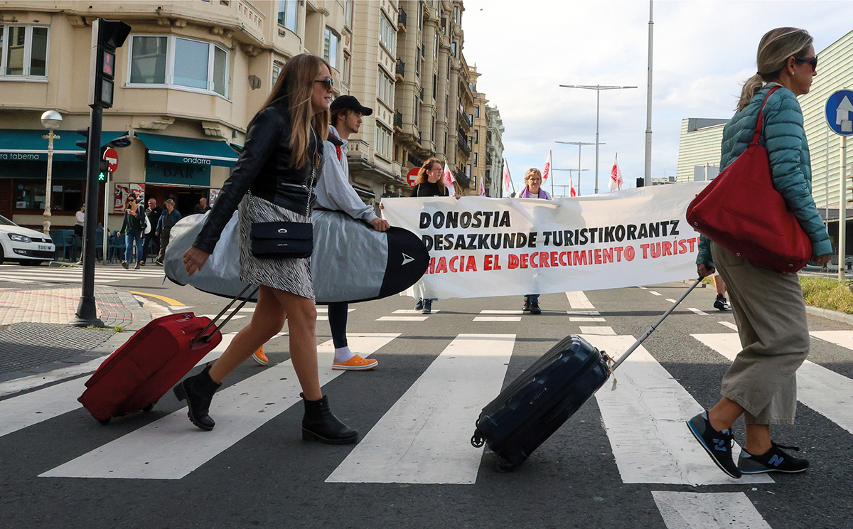 Ezker erradikalak 2015-2016 testuinguruan egin zituen hainbat protesta. Gerora, Bizilagunekin eta Donostia Defendatuz gisako mugimenduak agertu dira, desazkundea aldarrikatuz. Jada ez da turismo jasangarria aldarrikatzen, baizik eta turismoari muga bat jarri eta atzera egitearen beharra. Nik argi ikusten dut: turismoa xantaia bat da. Eta jaitsi egin behar da.