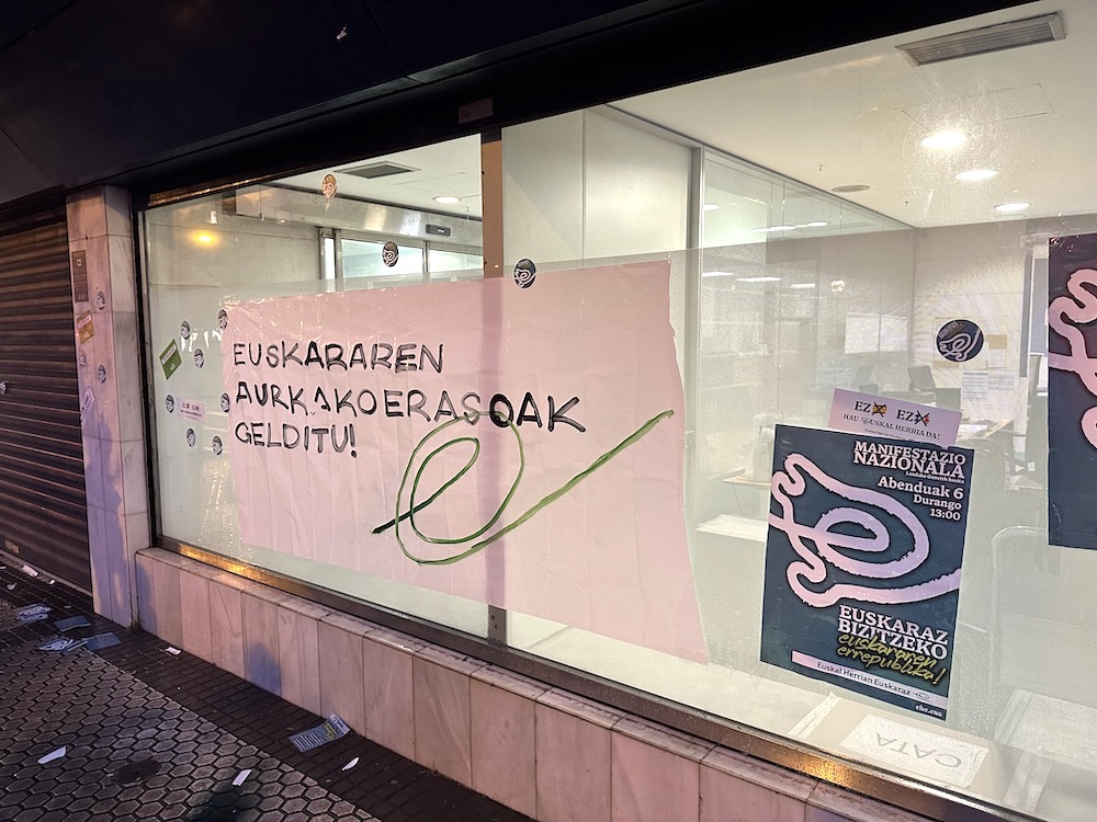 Hain zuzen ere, zentzu horretan, Jaurlaritzako Kultura eta Hizkuntza Politikako sailburu Ibone Bengoetxea Otaolearentzako gutun bat erregistratzen saiatu ziren bi kide, beste hainbat kanpoan protesta eta euskararen aldeko aldarrikapenak egiten aritu ziren bitartean. Aldiz, protestako ke poteak piztean, ordezkaritzako ateak itxi zizkieten, “beste behin ere herritarron aldarrikapenei entzungor eginez”, salatu dutenez. Horrez gain, ekintzaren baketsuaren ondoren, Ertzaintzak zazpi gazte identifikatu zituen.