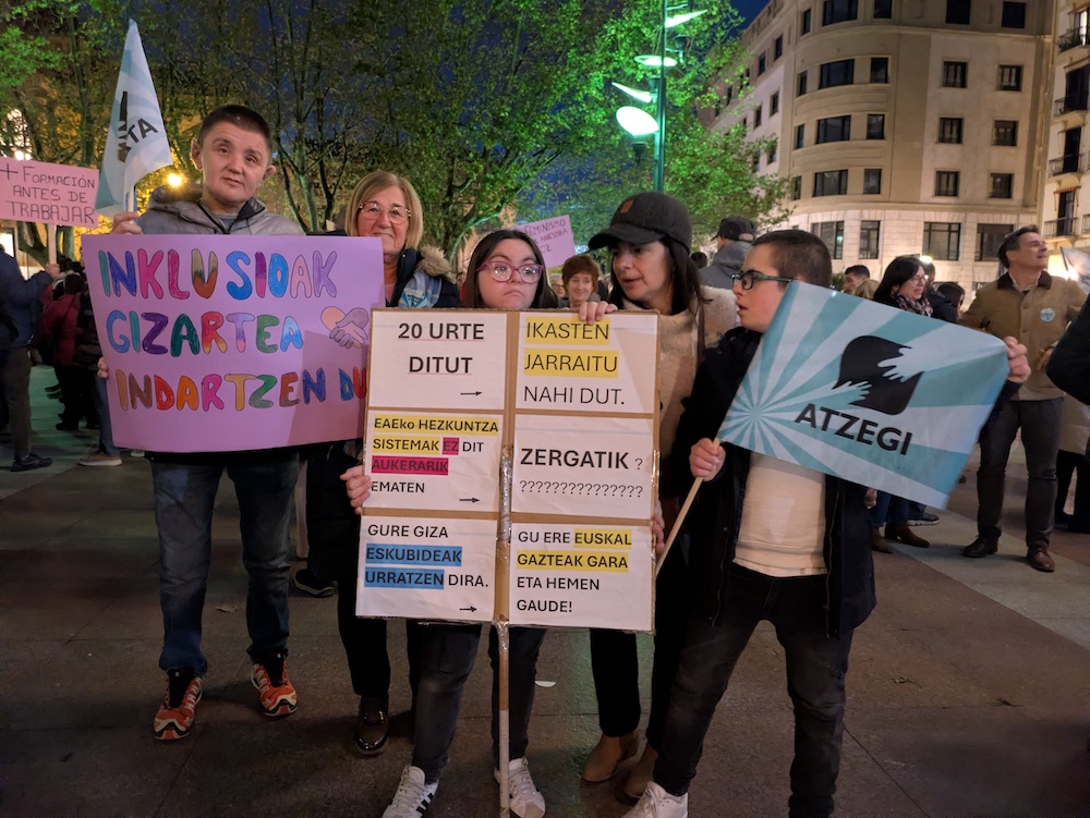 Geurea lortu arte – No vamos a parar lelopean, senideak, desgaitasun intelektuala duten pertsonak, boluntarioak eta erakundeetako ordezkariak bildu ziren beren mezua helarazteko: “Oraindik bada lanik egiteko berdintasunerako bidean”. Elkarretaratzean, hala, hainbat pankarta ikusi ziren, mezua argi utziz: Guri buruz ezer ez gu gabe, Ikasteko eskubidea dugu edo Gure bizitzen inguruan erabaki nahi dugu.
