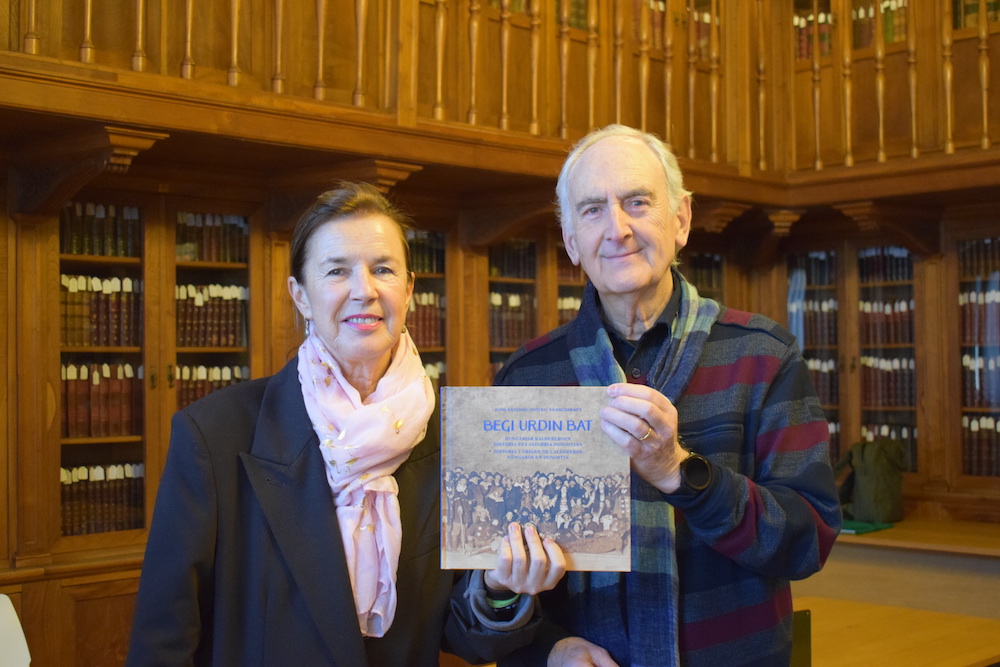 Ana Lopez kultura zinegotzia eta Juan Antonio Antero, liburuaren aurkezpenean. Nagore Garmendia Donostiako kaldereroen inguruko liburua argitaratu du Juan Antonio Antero Aranzamendi musikari eta ikertzaileak: Begi urdin bat. Donostiako kaldereroen historia eta jatorria. Gaur aurkeztu du Plaza Berrian.