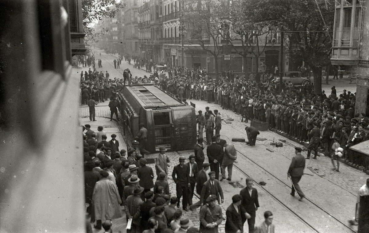 1916an izan zen lehenengo greba orokor bateratua. CNTk eta UGTk –garaiko sindikatu indartsuenek– antolatu zuten greba, eta Espainiako Estatu osoan izan zuen oihartzun bera izan zuen Donostian. Eguneko argazkiak jaso zituen La Voz de Guipúzcoa-k, hirian ohikoa bihurtuko zen praktika grebalari batekin: tranbia irauliak, hain zuzen.