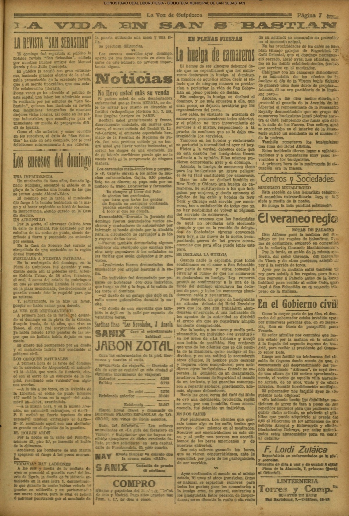 Sektoreka, ehunka izan dira hirian izandako grebak: zapatariak, arotzak, tranbia gidariak… Zerbitzariek ere greba egin zuten 1920ko abuztuan