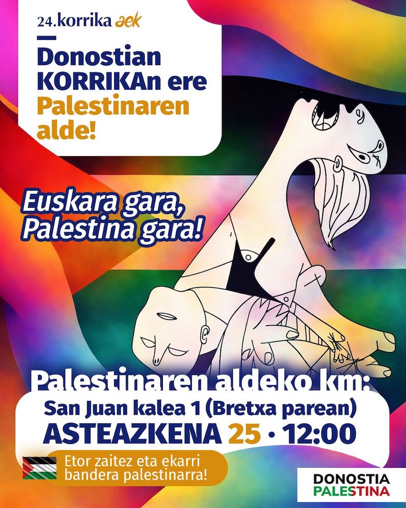 Zehazki, Parte Zaharrean hartuko dute euskararen aldeko lekukoa, 12:00etan San Juan kalean (Bretxa parean), eta herritarrak Palestinako banderekin parte hartzera deitu dituzte, Euskara gara, Palestina gara! lelopean. Azaldu dutenez, Gazako kideek eramango dute lekukoa: “Egin dezagun korrika haiekin batera”.