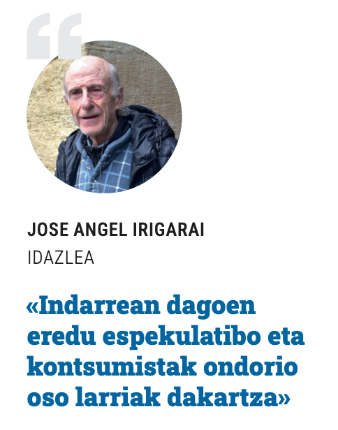 Irigaraik ere antzeko irakurketa egiten du. Haren ustez, egungo eredu ekonomiko eta urbanistikoak ondorio larriak ditu: «Badakigu, indarrean dagoen –eta eragiten den– eredu espekulatibo eta kontsum