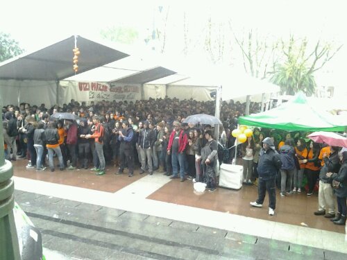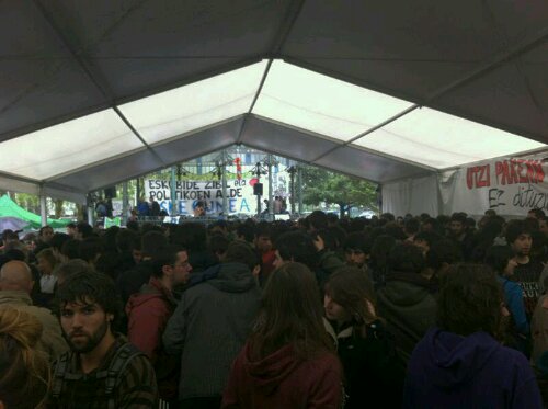 Ikasle zutabeak instituetatik eta unibertsitateetatik abiatu dira Bulebarrerantz; Antigua, Gros eta Intxaurrondotik abiatu dira. Guztira 300 bat ikasle. Elkartasunezko adierazpen bat egin dute kioskoan. Gazteok antolatzen jarraituko dugu. Aske Gunearen ondoren ezer ez da berdina izango”.